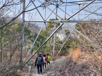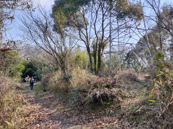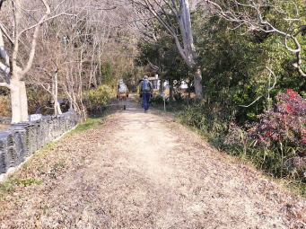 姫路方面に初めて利用する山陽電車で9時半に的形駅に集合。最近の警報級の寒波の中ではあるが、本日は気温2℃ではあるが青空の元、風も無く、穏やかな登山日和である。木庭山の展望所で瀬戸内海を見ながら昼食を取る計画なので反時計回りに周回する。町中の住宅街を北に向けて歩み始める。要所々に案内標識が掲げられているのでそれに従っていく。通常の登山口と違って街中の民家の間を抜けると「坂の上」東登山口は現れる。真竹の竹林を抜けると道の両脇にはこの時期である水仙がすでに花を咲かせている。少し行くと無人のミカン販売所があり、のむさんが5個/100円を買ってくれる。甘かったが1個は腐っていたので買う人は良く見て買ってね🤩。
