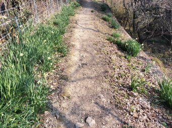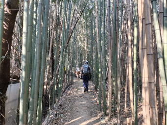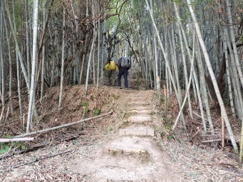 | 山道脇には季節の水仙→ | 防獣フェンスを通り抜ける→ | 再び雰囲気のある竹林の中へ→ |