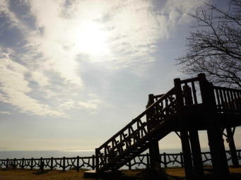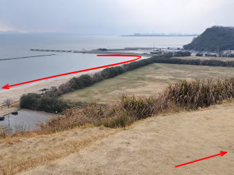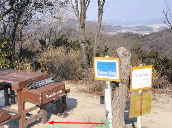 | テーブルが置かれた ①坂の山頂上→ | 北側には姫路方面→ | 南側には的形市街の先に瀬戸内海→ |