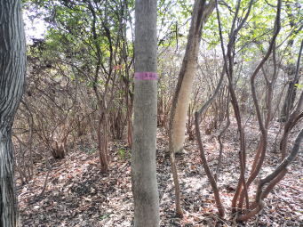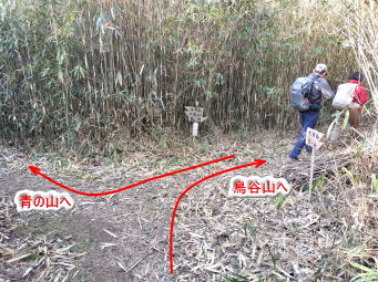 | ここの分岐で鳥谷山へ→ | #18鉄塔横を通過→ | 雑木林の中の ④鳥谷山頂上→ |