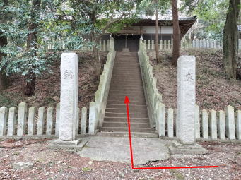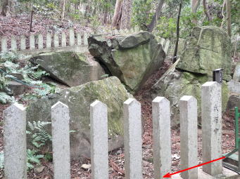 | 早速、竹林の中を進む→ | 社殿の無い姫石神社→ | 裸石神社→ |