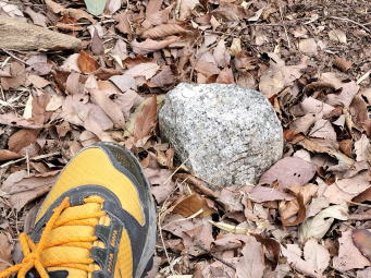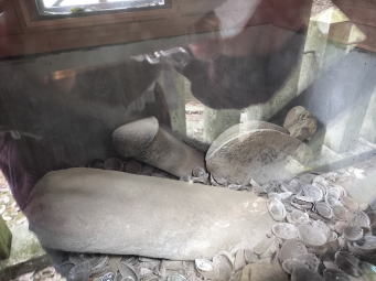 兵庫楽農生活センター施設内を少し登って行くと右手に梅園が現れる。見頃は終わっているがまだ多くの紅、白の梅花を付けている。直ぐに直進的な幅広い道の登山口となる。やがて先にはドライブウェイと合流するので適当に雑木林の中を車道に沿ってトラバースしていくと「姫石神社(ひめいし)」が現れる。姫石神社には社殿はなく、山腹に露頭した大きな御神体の磐座が何個か置かれているだけであるがパワースポットとなっている。更に進んでいくと今度は「裸石(らいせき)神社」。裸石神社には社殿がありその周囲は歩けるようになっており、格子越しに本殿の内部に男性・女性のシンボルが鎮座している御神体を見ることができる。その周囲には、多くのアワビの貝殻が置かれている。裸石神社と姫石神社は、それぞれ【陰】と【陽】のエネルギーを象徴する神聖な場所である。