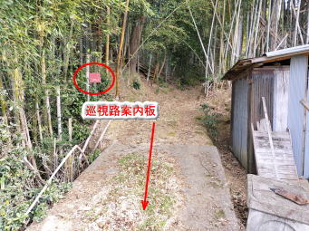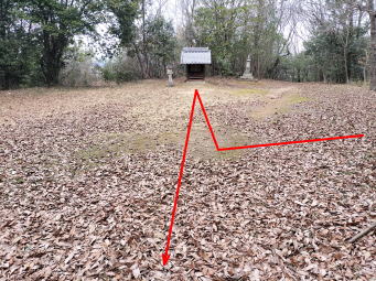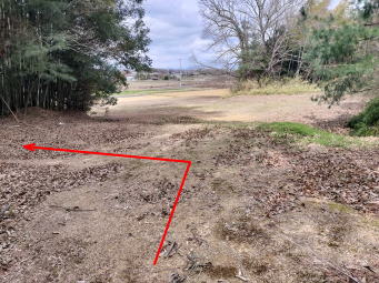 | 愛宕山からの参道→ | 左に折れて水路?に従って進む→ | やがて藪になってくる→ |
