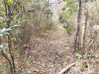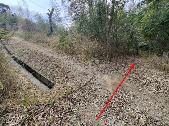 | 最初の水路の続きと思われる水路に出会う→ | 平地に出る→ | 鉄塔巡視路入口に出てくる→ |